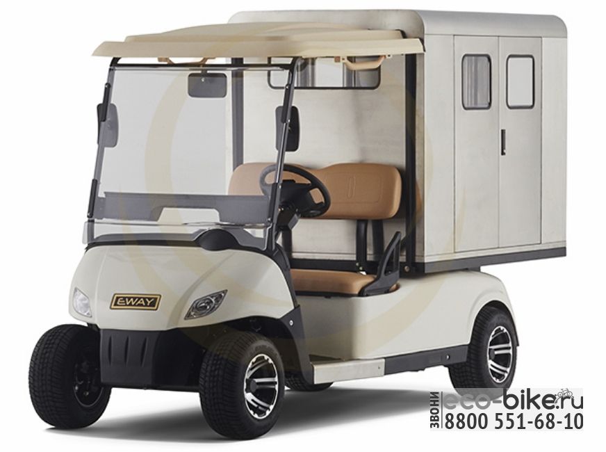Гольфкар EWAY HMS6 - вид транспорта нового поколения, который сочетает в себе новейшие технологии лучших американских и китайских разработчиков, а также абсолютно безопасен и экологичен. Электробус при всей оснащенности довольно прост в обслуживании. Мощный и динамичный мотор в 3800W способен разогнать агрегат до 24 км/ч. Корпус создан из легкого, ударопрочного материала. Вес гольфкара составляет 615 кг, при этом грузоподъемность 660 кг. Благодаря клиренсу 110мм и двойной рессорной подвеске с амортизаторами движение по неровной дороге значительно смягчается. Имеется 2 места с эргономичными комфортабельными сидениями.